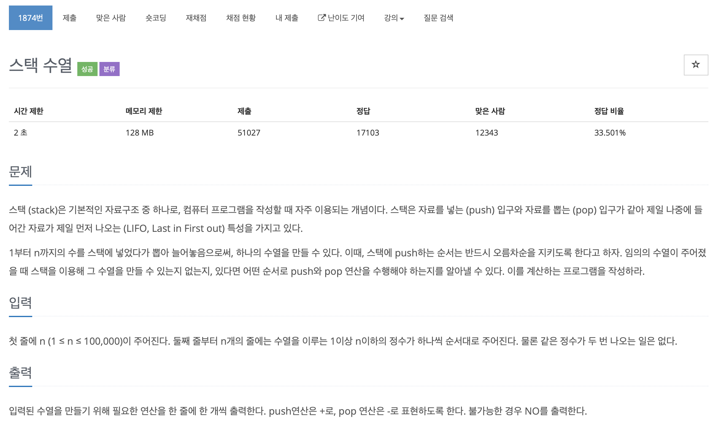 1874번: 스택 수열