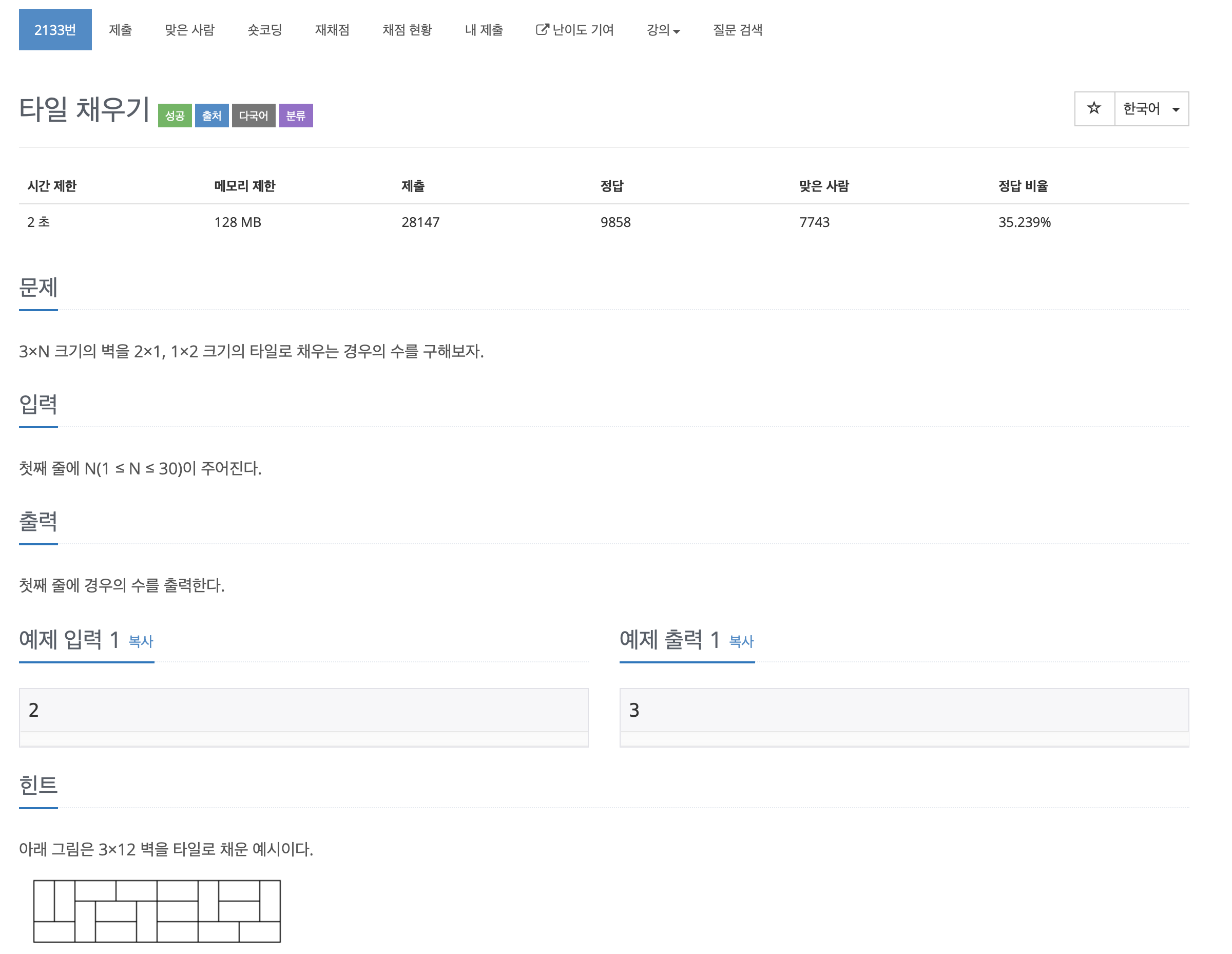 2133번: 타일 채우기
