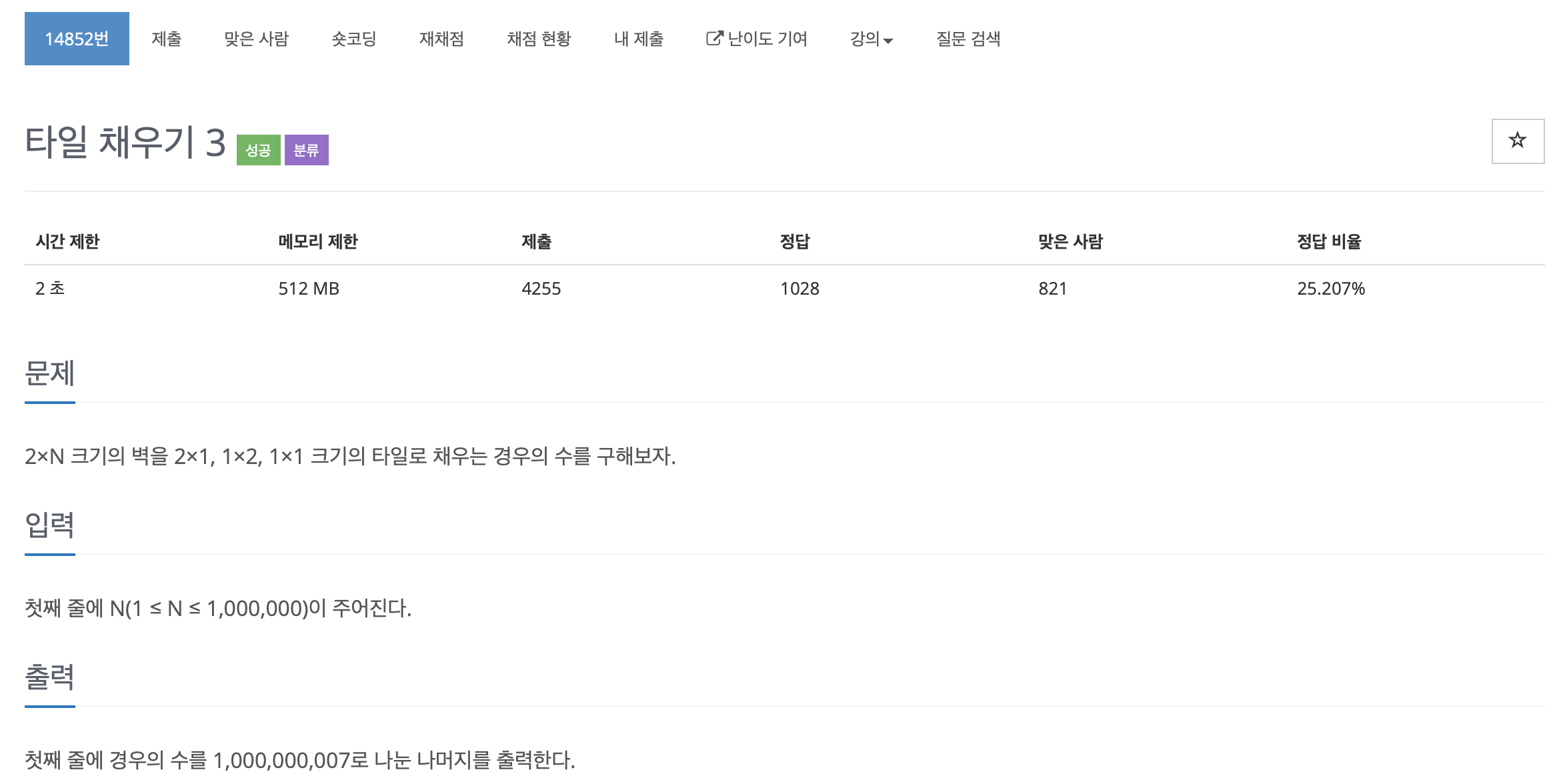 이 문제의 경우도 2xn 타일 채우기와 유사한 응용문제이다.