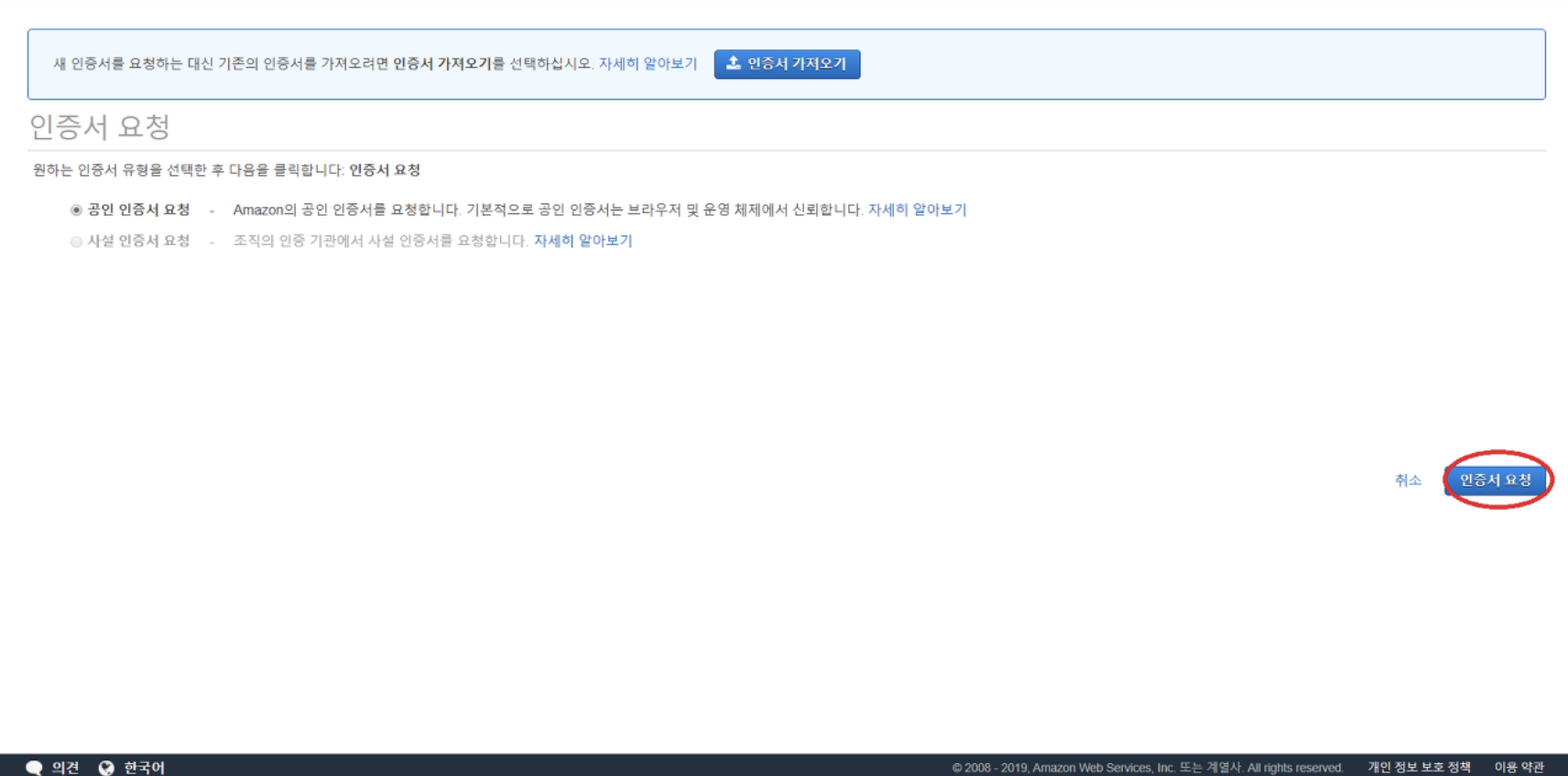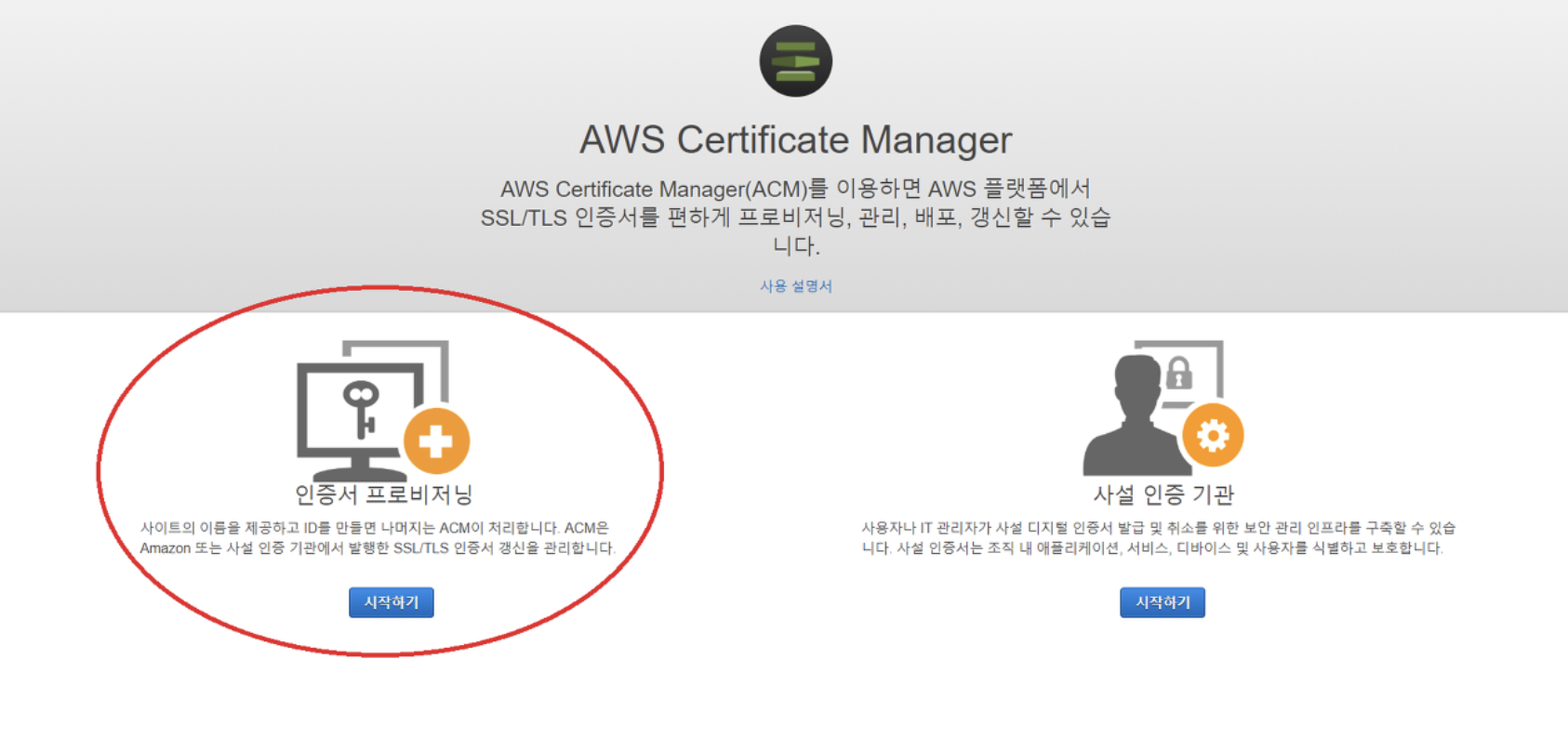 다음으로 ACM(AWS Certificate Manager) 페이지로 이동한다.