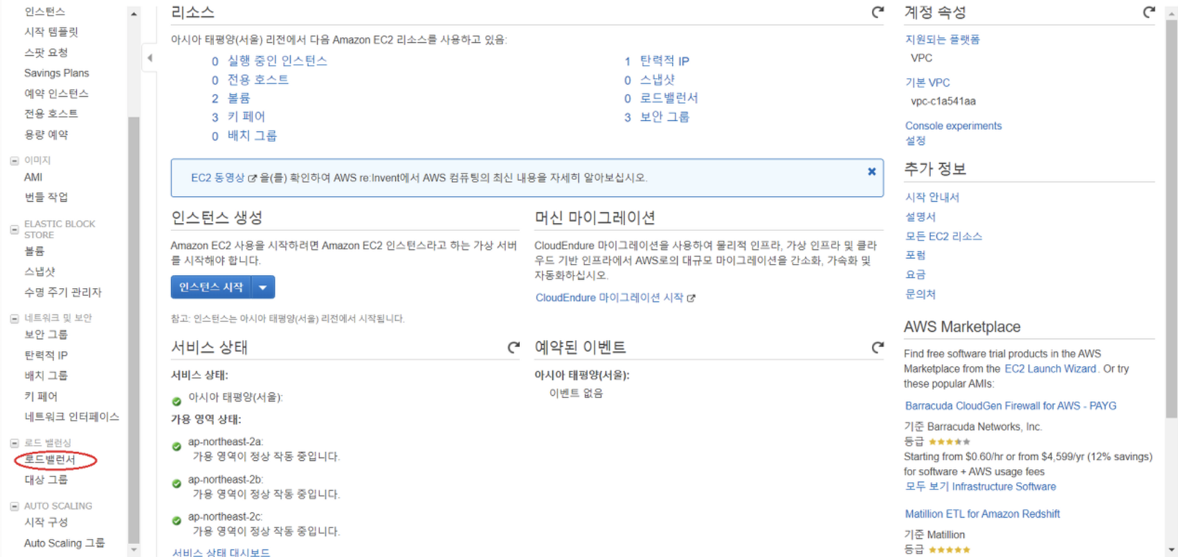ec2 대시보드 메뉴에 하단에 보면 로드 밸런서 메뉴가 있다.