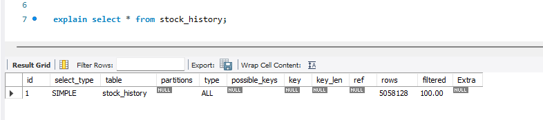 - type이 ALL인 경우, MySQL은 테이블의 모든 레코드를 순차적으로 스캔합니다.