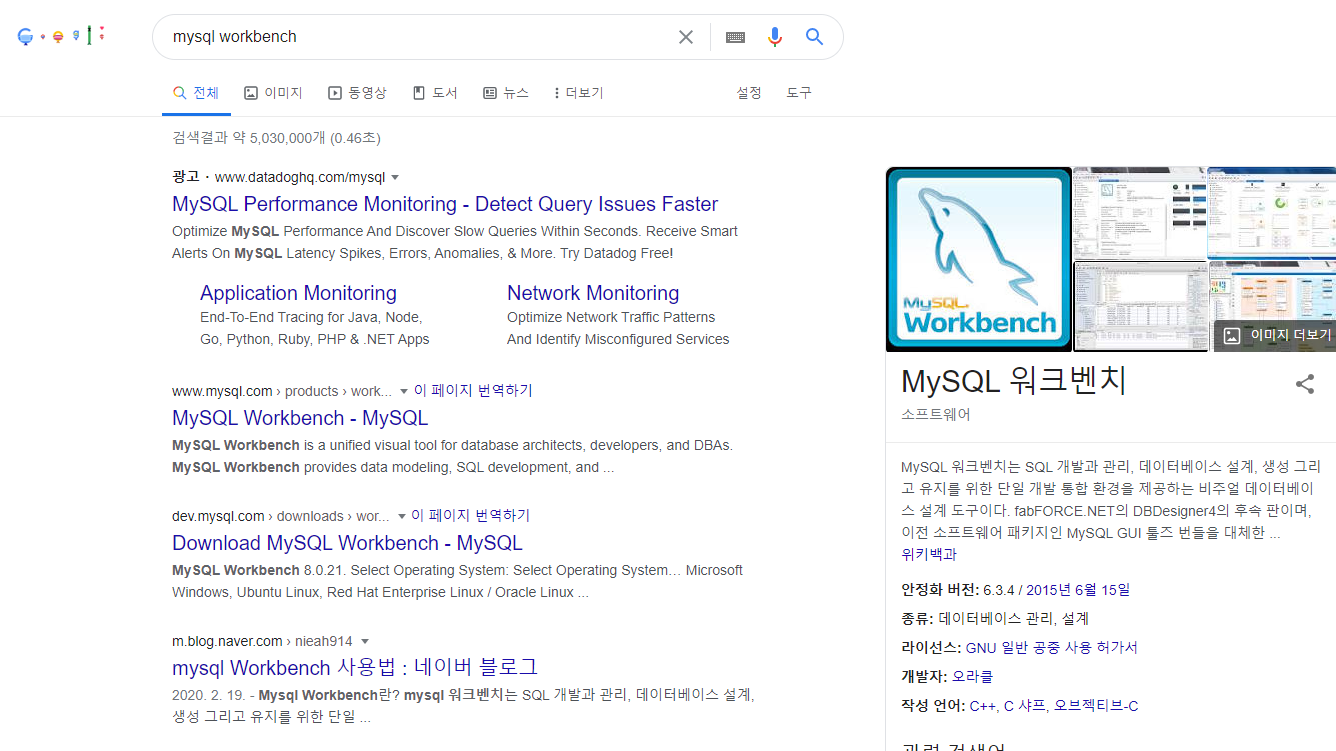 아래 사진과 같이 구글에다가 [mysql workbench]라고 검색만 해주면 쉽게 나오는데