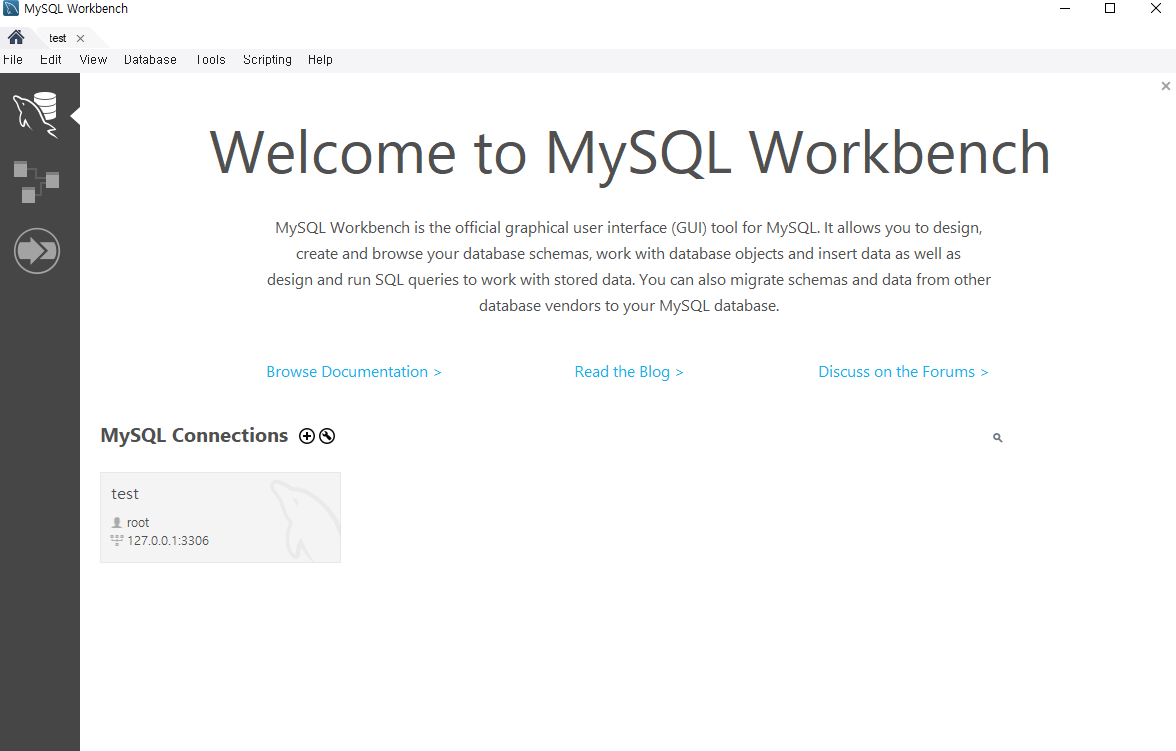 테스트에 문제가 없으셨다면 OK를 눌러 창을 닫으면 워크벤치 홈 화면에 등록한 Connection이 갱신되어 있습니다.