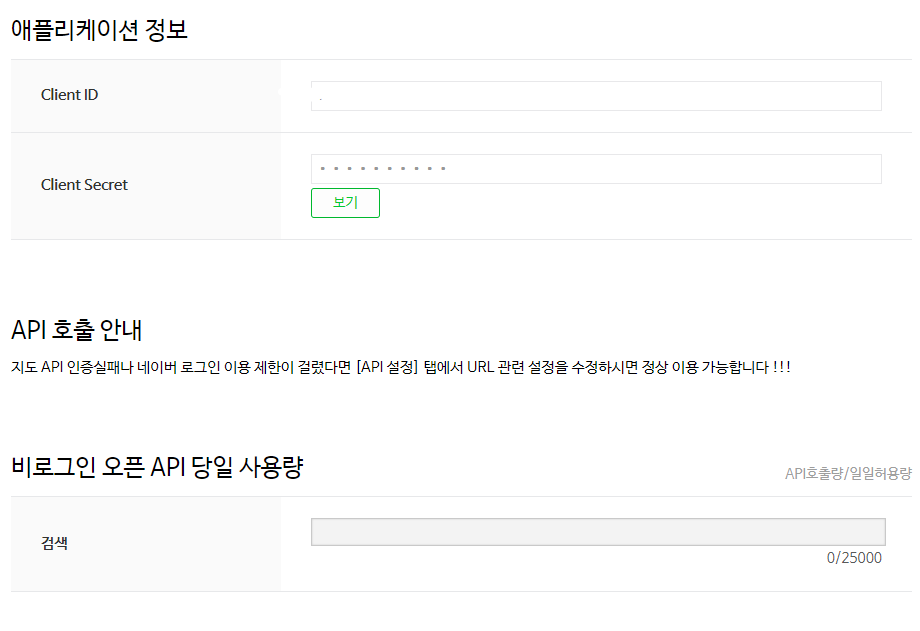 이 때 아래의 0/25000 이라 나와있는 것은 일일 사용량 제한이니 잘 보고 사용하도록 하자.