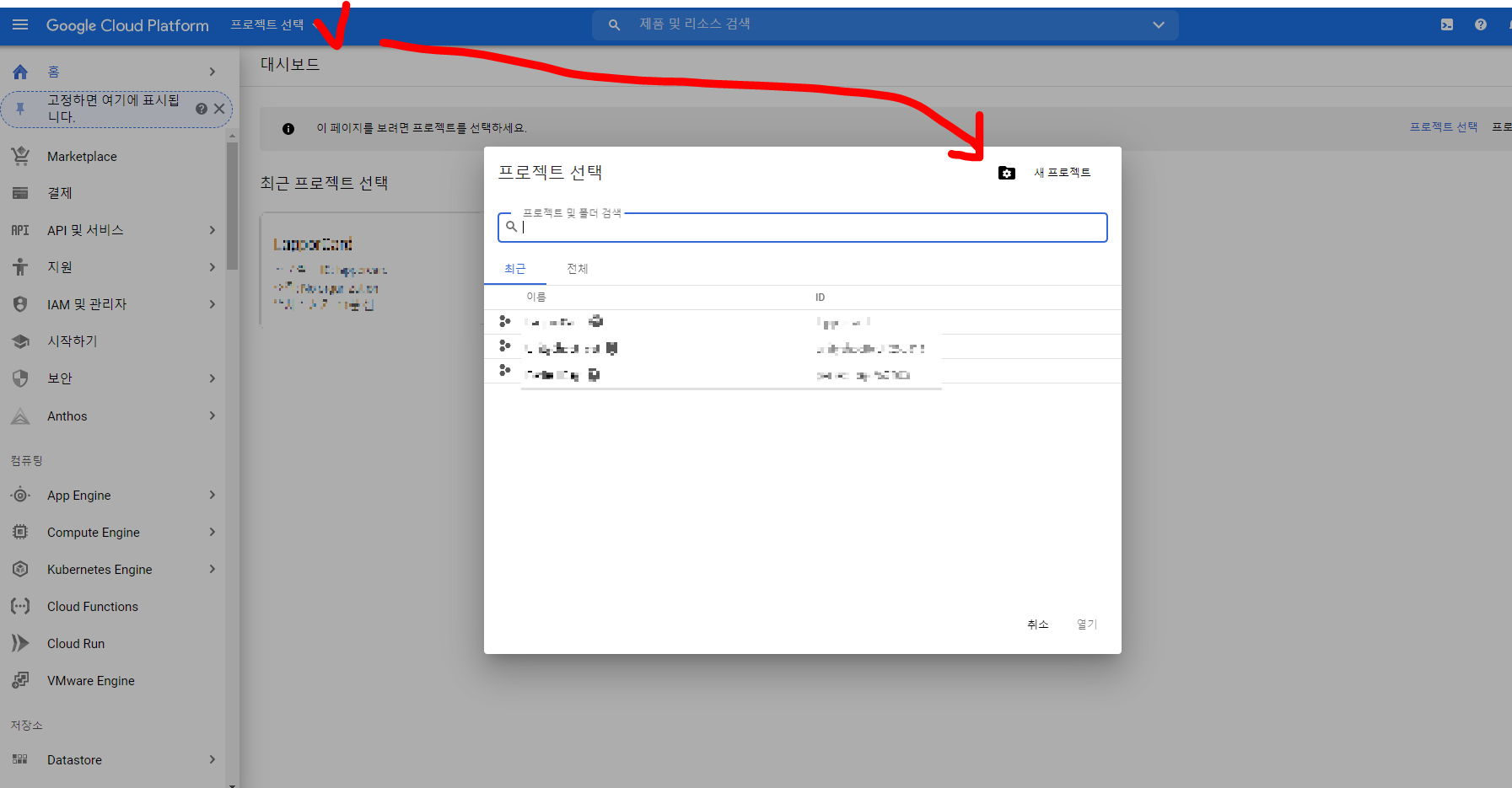 (처음 가입하고나면 구글이 알아서 프로젝트 만들라고 잘 유도해줄 것이다.)