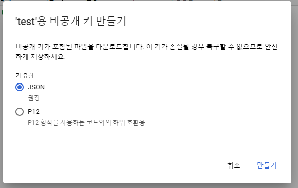 6. 서비스 계정 비공개 키 받기