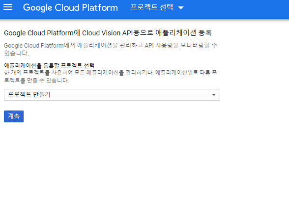 먼저 구글의 Vision API 기능을 사용하기 위해서는 클라우드 플랫폼 사이트에 가서 프로젝트를 등록해야 한다.