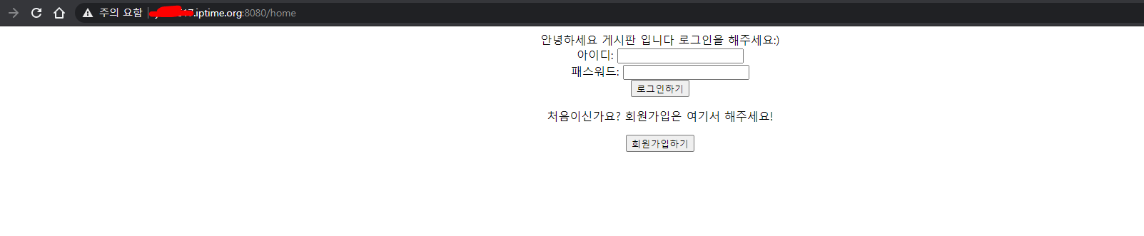 xxxx.iptime.org:8080/home 으로 접속하니 아래와 같이 잘 뜨며 접속이 되었다.