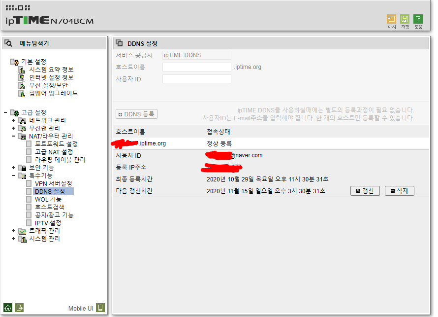 필자의 경우 계속 DDNS가 세팅이 안되서 며칠동안 원인찾느라 고생했는데