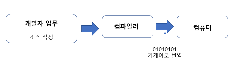 컴파일러라는 녀석이 우리가 작성한 코드를 컴퓨터가 이해할 수 있는 언어인 기계어로 번역을 해줍니다