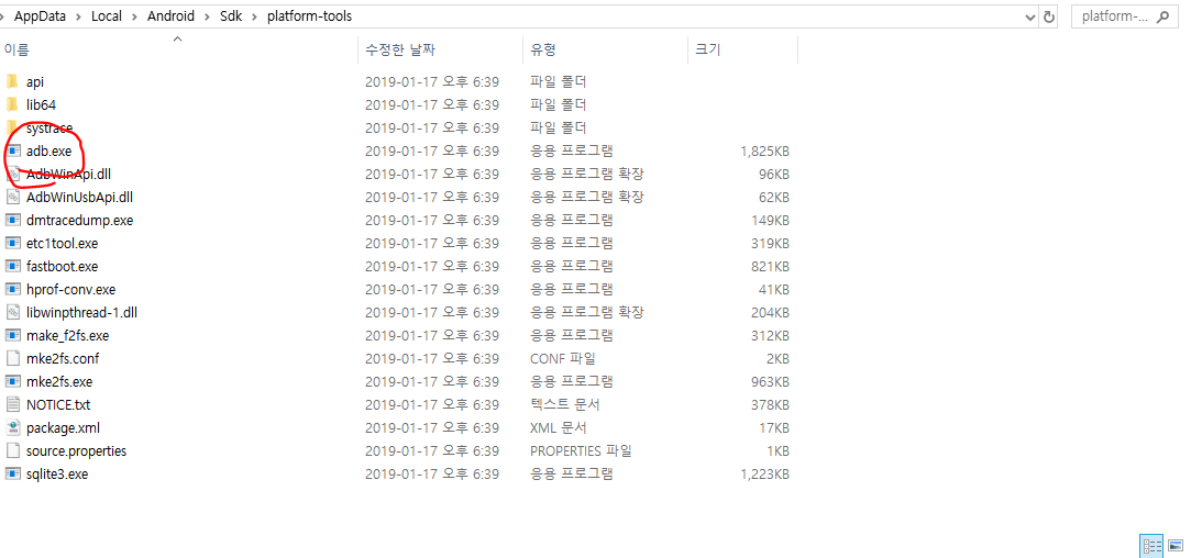 여기서 adb파일이 있는 경로를 알아내자.