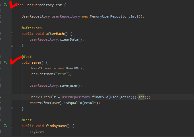 - 테스트를 진행할 Repository 코드