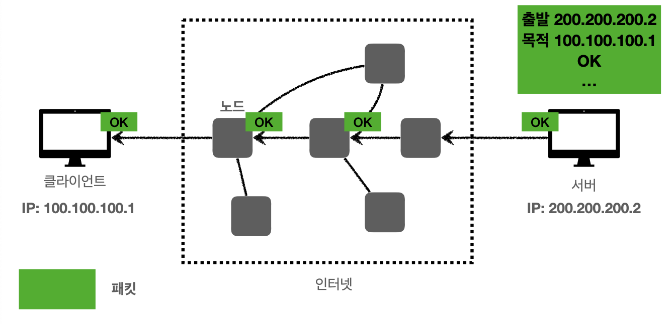 클라이언트에서 패킷에 출발지와 목적지를 적고 인터넷에 실어보내면