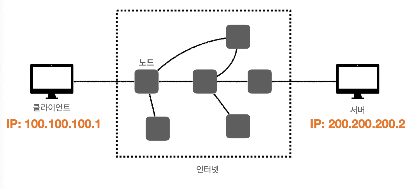 중간의 인터넷 망은 수많은 노드로 구성이 되어있다.