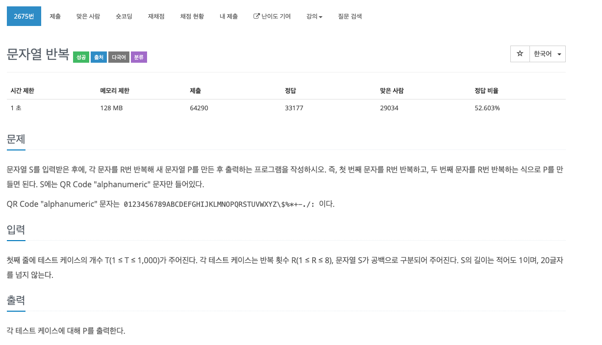 2675번: 문자열 반복